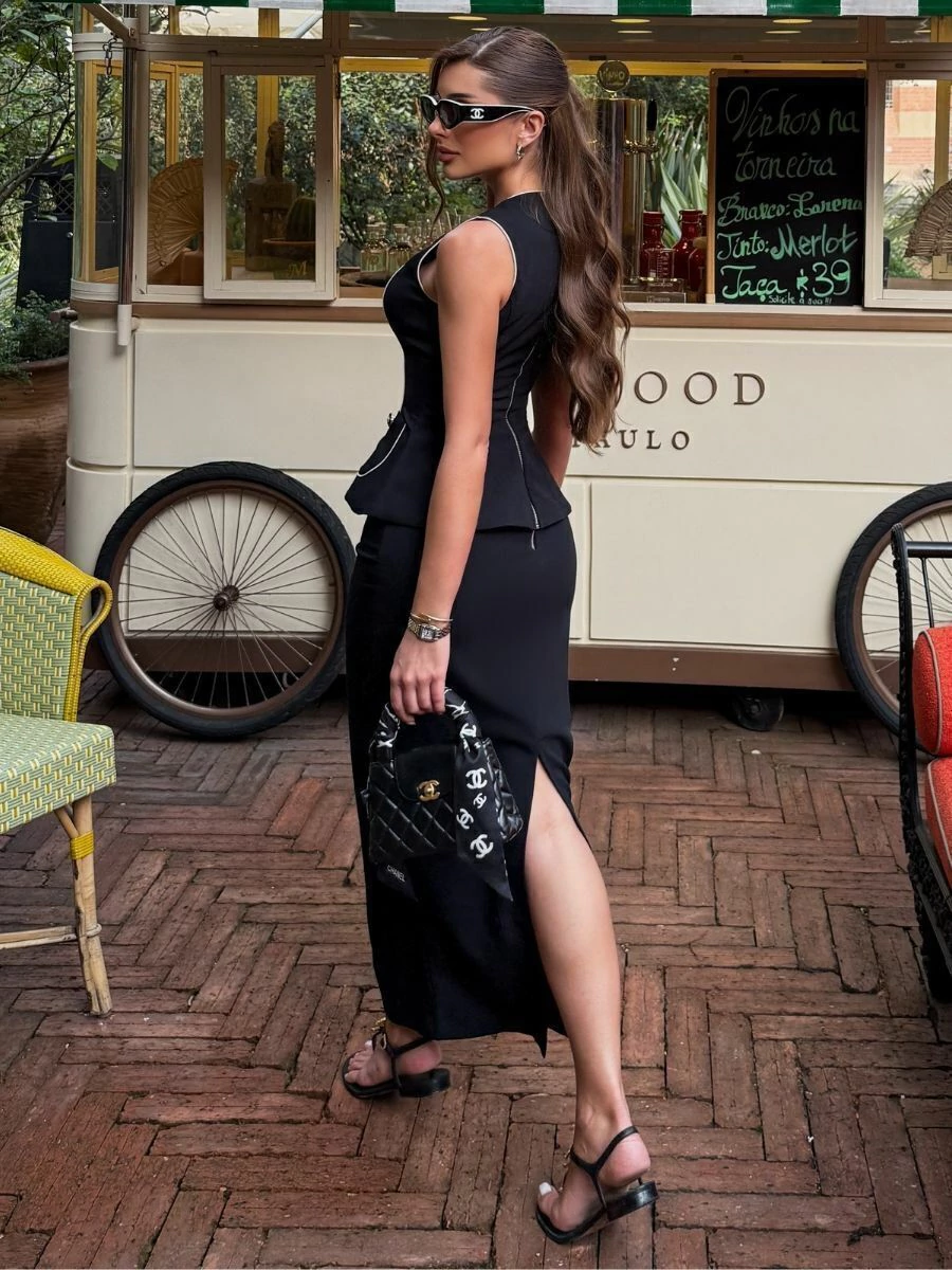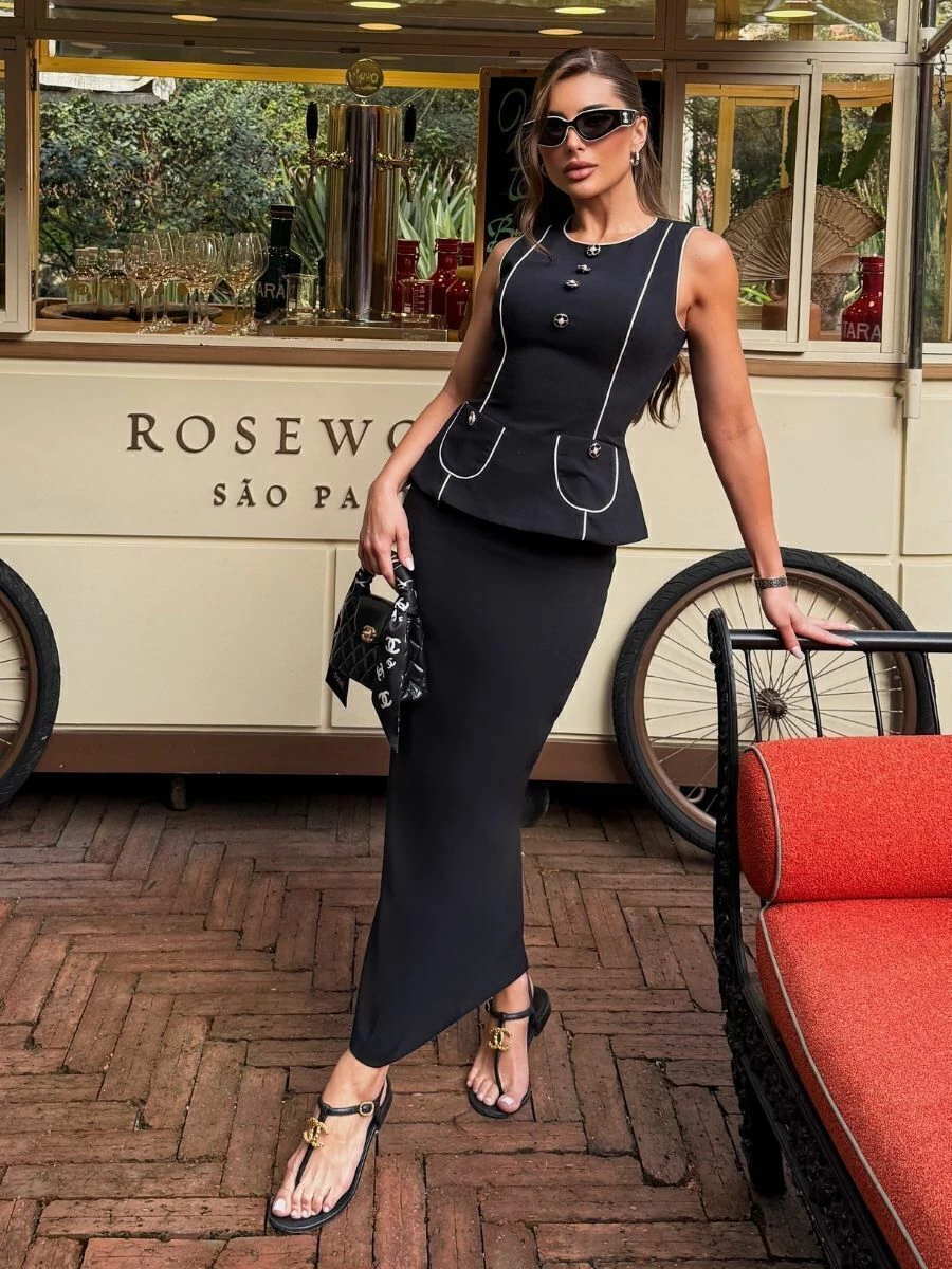 O conjunto preto Clair em alfaiataria moderna é a escolha ideal para quem busca elegância com versatilidade. Com design estruturado e detalhes exclusivos, traduz sofisticação em produções que vão do office look refinado a eventos noturnos e ocasiões especiais.