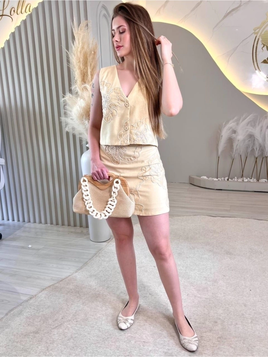 A Saia Bia em Linho amarelo manteiga com Bordado Floral é a peça perfeita para quem busca unir sofisticação e conforto em um único look. Produzida em linho premium, o tecido leve e respirável garante frescor e um caimento impecável, ideal para os dias mais quentes.