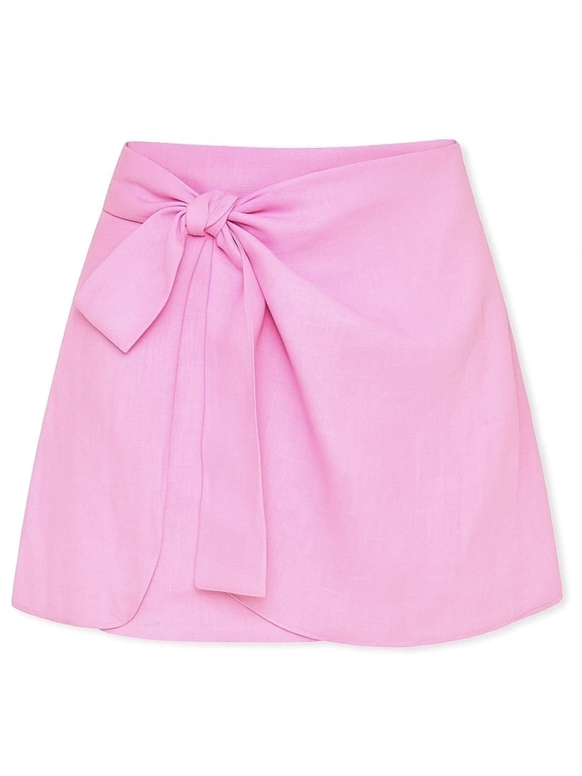 A Saia Curta em Linho Rosa com Amarração Frontal é sinônimo de charme e frescor. Feita em linho de alta qualidade, ela oferece toque leve, caimento natural e conforto térmico, perfeita para dias ensolarados e produções delicadas.