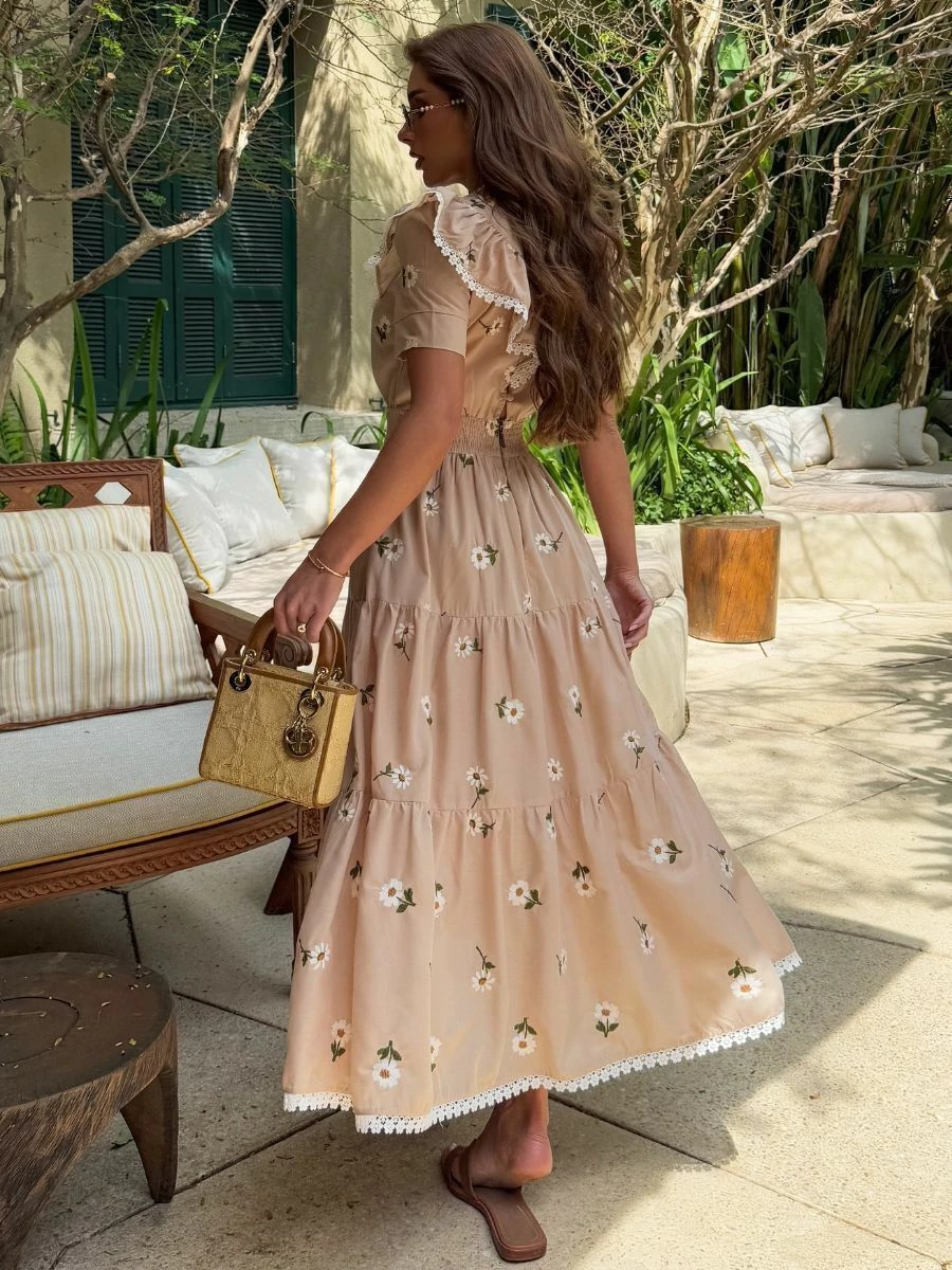 Romântico e leve como um jardim de verão. O Vestido Daisy traduz feminilidade e frescor em cada detalhe, com sua estética delicada e atemporal.