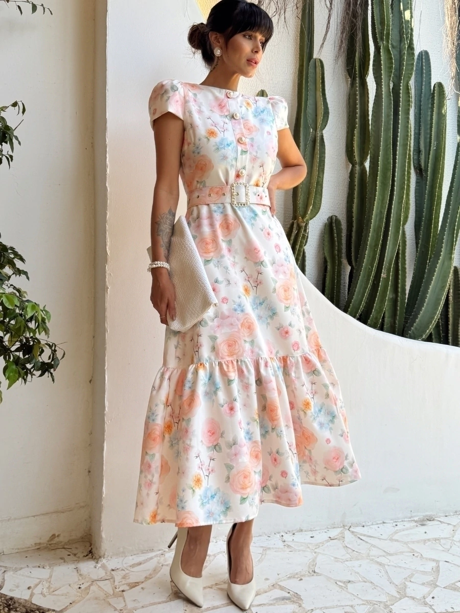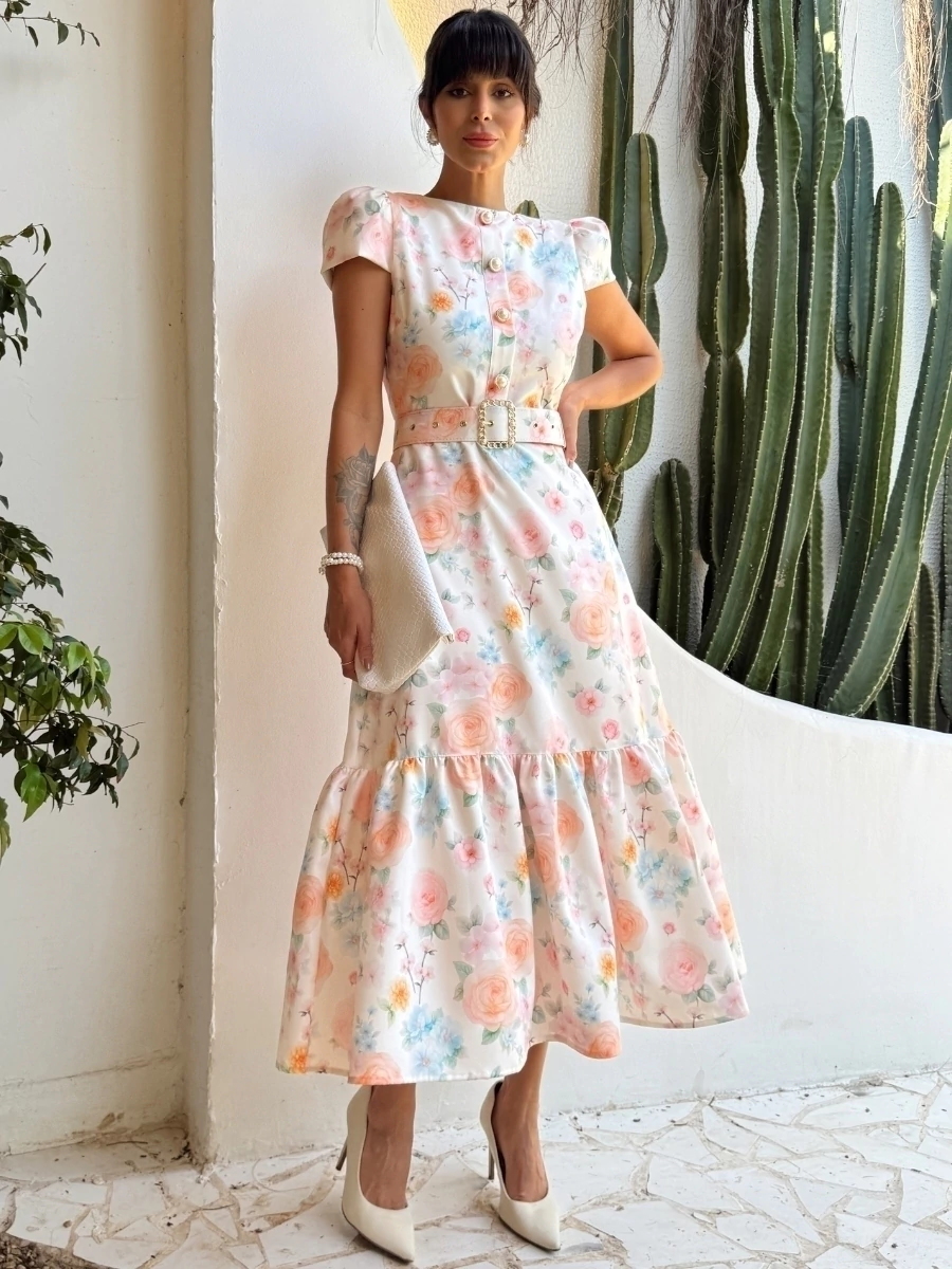 O Vestido Estela é a peça ideal para quem deseja um look sofisticado, feminino e versátil. Com estampa delicada, modelagem midi e manguinhas que trazem charme extra, ele é perfeito para eventos sociais, encontros especiais ou até para um dia de trabalho elegante.