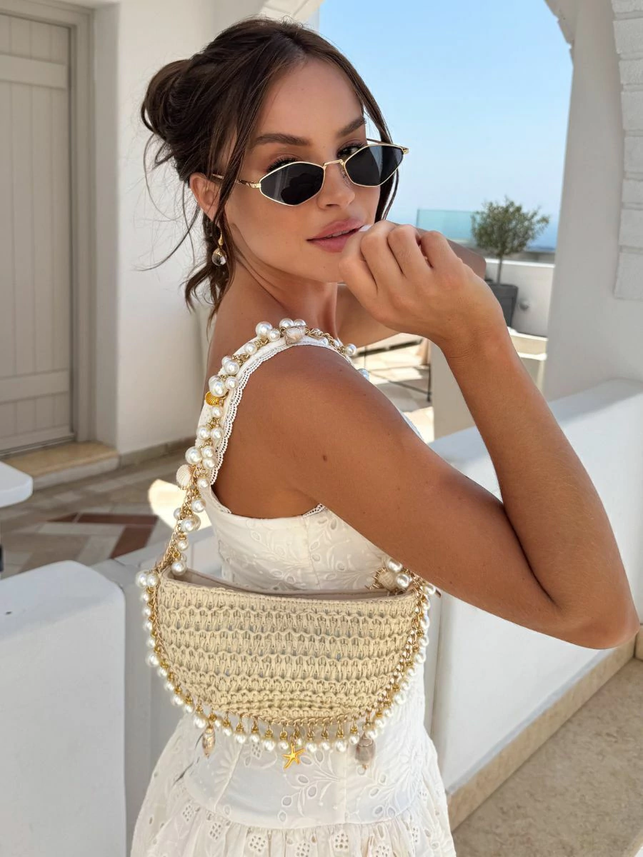 Uma escolha perfeita para férias à beira-mar, festas ao pôr do sol e looks iluminados com toque artesanal.