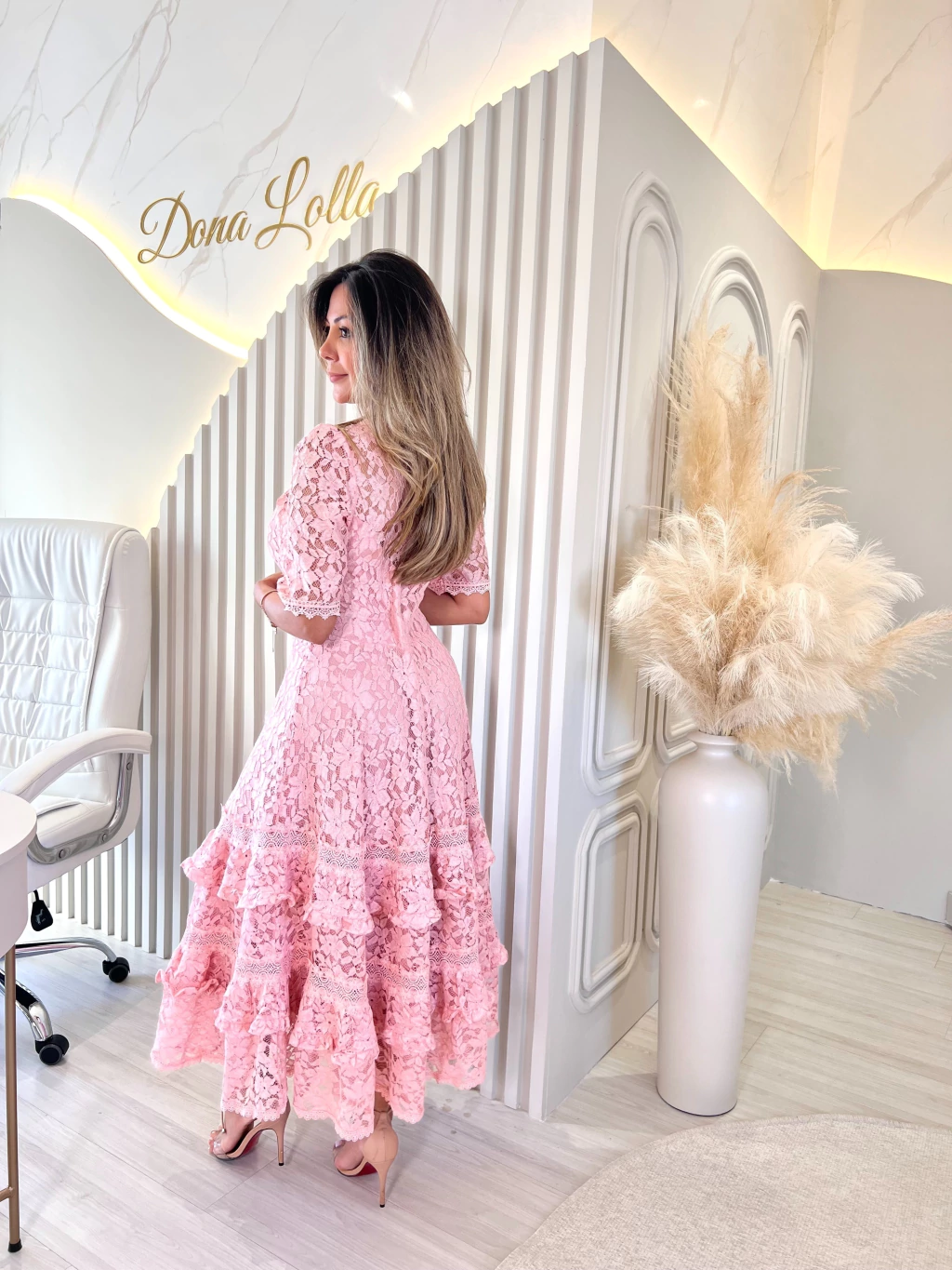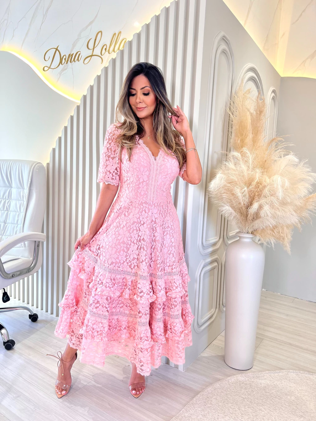O Vestido Fernanda é a escolha ideal para quem busca sofisticação e romantismo em um só look. Desenvolvido em renda delicada no tom rose, ele traz leveza e charme na medida certa, garantindo presença marcante em festas, casamentos, formaturas ou eventos sociais.