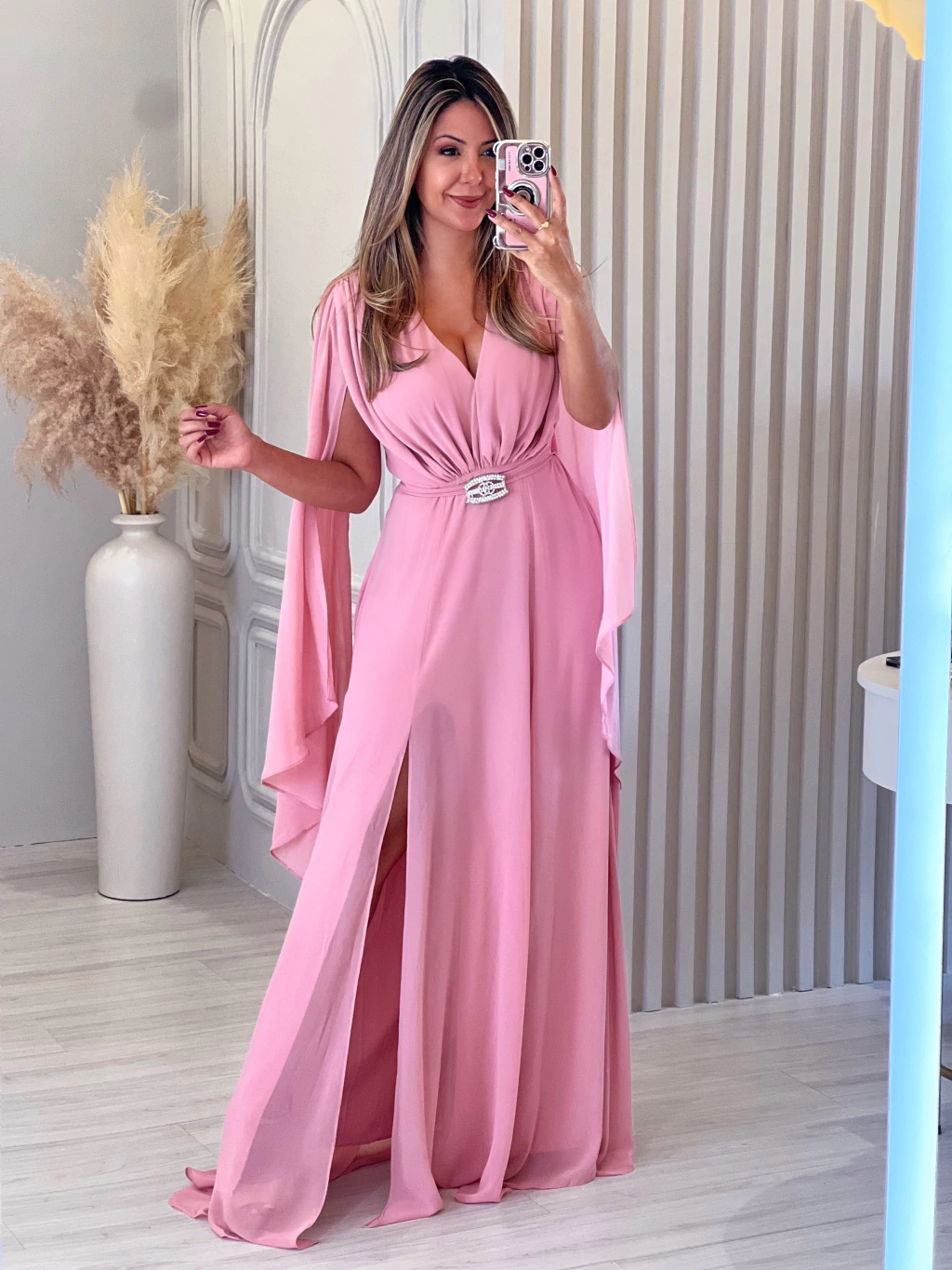 Apresentamos o vestido confeccionado em crepe musseline de alta qualidade, com modelagem cortada no viés que proporciona um caimento fluido e elegante. A fenda lateral confere um toque de modernidade e sofisticação, enquanto o zíper nas costas garante praticidade e ajuste perfeito. Acompanha broche de strass, que adiciona um detalhe refinado e delicado, elevando o visual para ocasiões especiais.