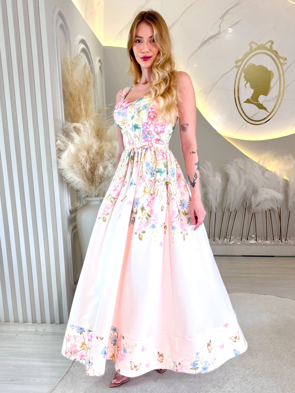O Vestido Nora é sinônimo de feminilidade e elegância natural, combinando design clássico com toques modernos que realçam a silhueta.