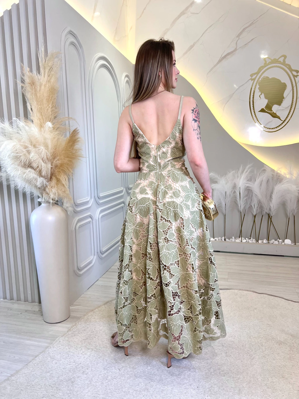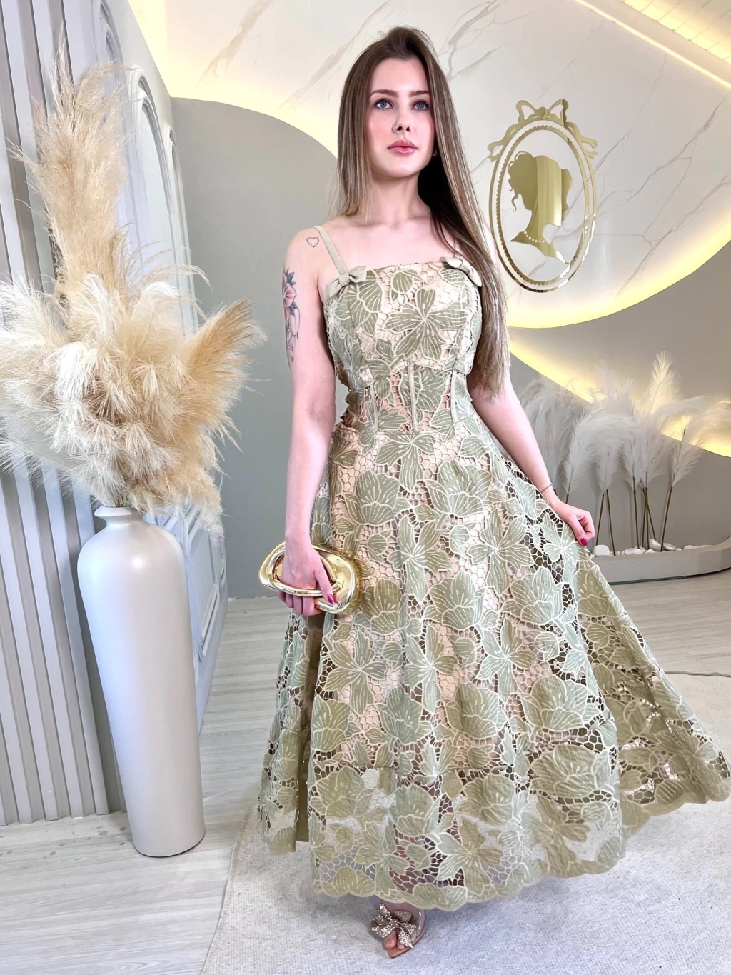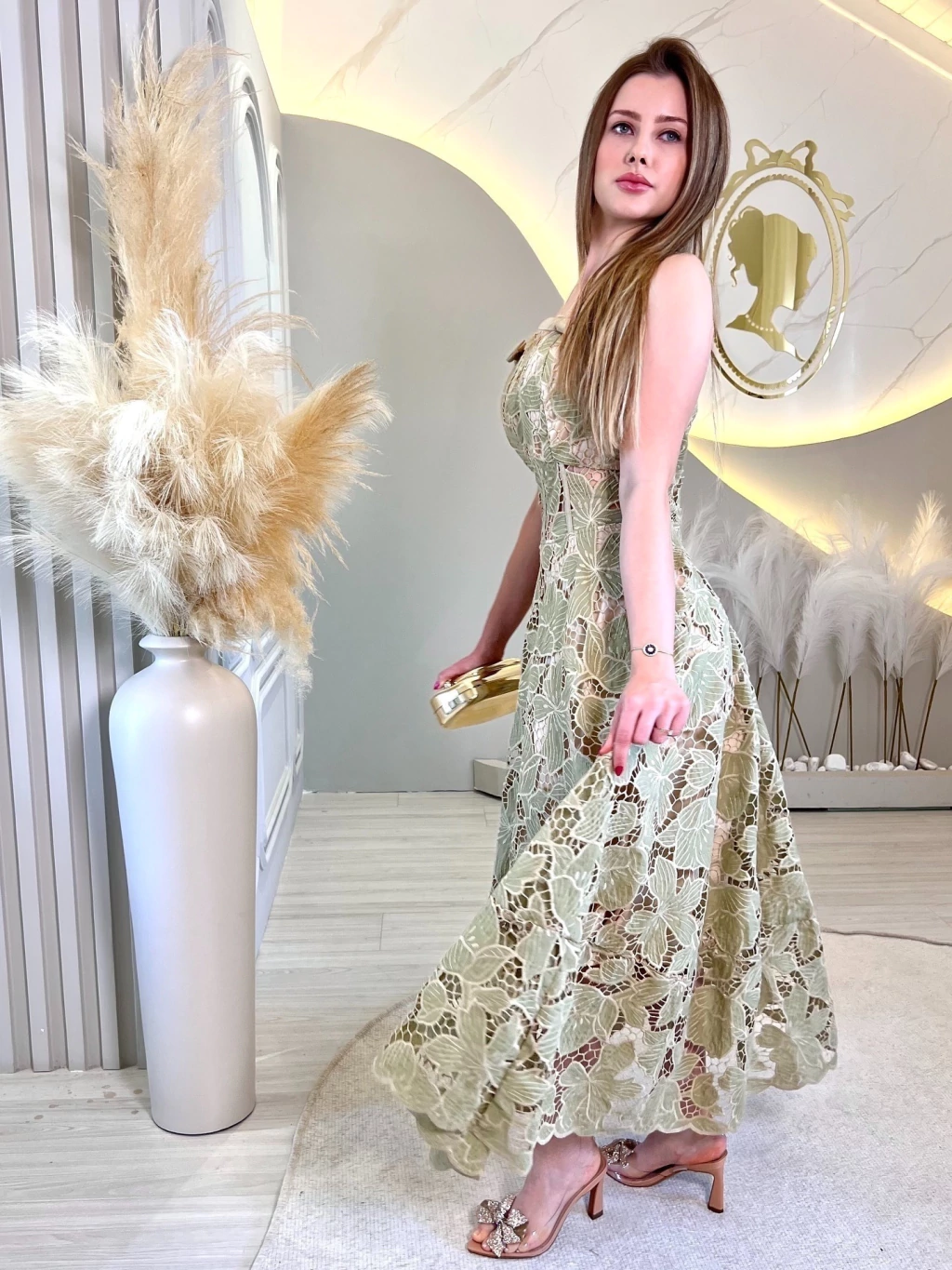 ✨ O Vestido Sarah Midi Guipir Floral Verde Pistache é a peça-chave para mulheres que desejam expressar elegância e feminilidade em qualquer ocasião.