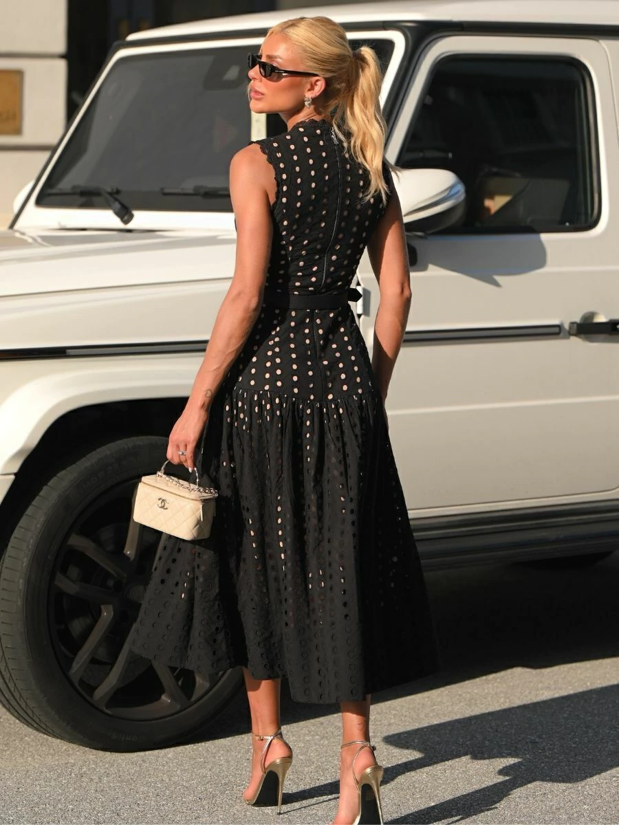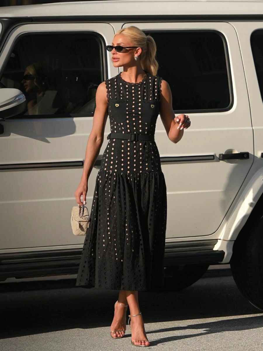 Clássico e moderno ao mesmo tempo, o Thelma traz a força do preto em uma leitura leve e sofisticada. A renda em padrão vazado — tendência do verão 25/26 — adiciona textura e delicadeza à peça, equilibrando sensualidade e elegância.